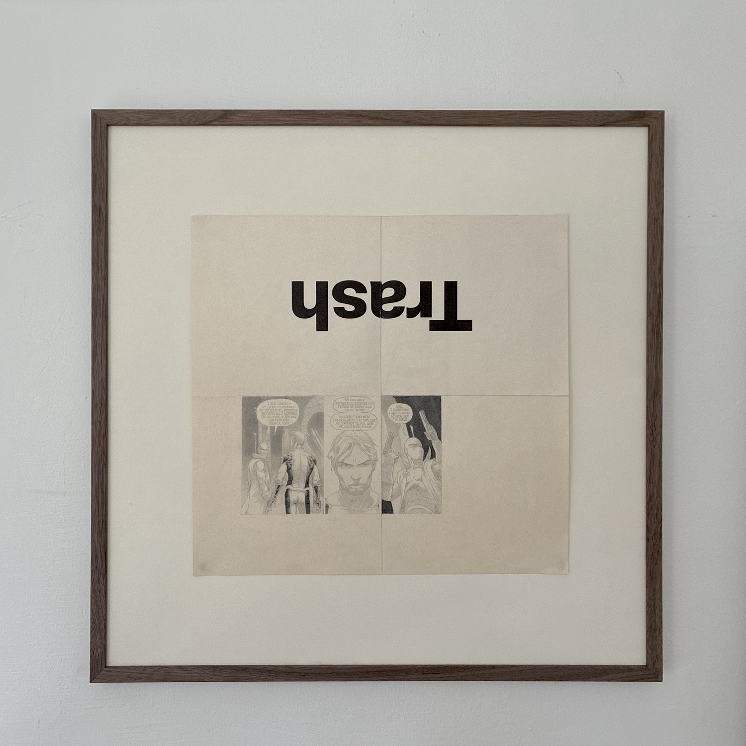 Since the piece of paper with a word "TRASH" on it was very good quality, I draw these comic book panels on to it as faithfully as possible, as I had a habit of doing those days.